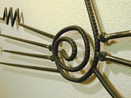 アイアンのフレームに、様々な材種の木を組んでいます