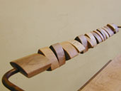 カフェのオーナーからのご注文で作った子どもベンチ。 背もたれでカチャカチャ遊べるようにしました。